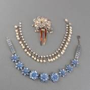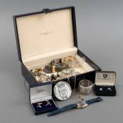 Bijouterieën, twee horloges Romar en Swarovski, vergulde manchetknopen, in doos met slotje