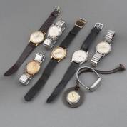 Zeven diverse polshorloges, waaronder: Pontiac en Plato, daarbij: zakhorloge