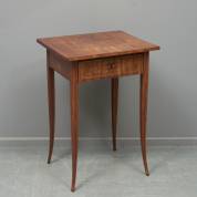 Mahoniegefineerd handwerktafeltje, de lade met inlegwerk en vakverdeling, 19e eeuw -licht verbleekt-, 75 × 52,5 × 45 cm