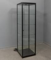 Zwartgelakte vitrine met vier planken, voorzien van verlichting, 20e eeuw, planken beschadigd, 78 × 50 × 50 cm