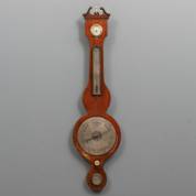 Banjobarometer in mahoniegefineerde kast, tevens voorzien van alcoholthermometer met Fahrenheitschaal, adres: J. Bianchi, Edinburgh, 19e eeuw, 97 × 24 cm