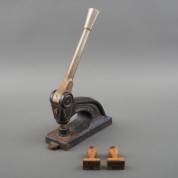Gietijzeren blindstempeldrukker, met als stempel een swastika, door vader van inbrenger gebruikt tijdens de Tweede Wereldoorlog om documenten te vervalsen voor het verzet, daarbij: twee houten stempels met de teksten 'AST SD' en 'NAST NSD',