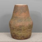 Bruin-groengeglazuurde keramiek vaas, uitvoering Kunstaardewerkfabriek Mobach, Utrecht, -klein plekje met witte verf-, hoogte 43 cm