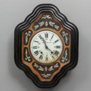 Franse oeuil de boeuf wandklok met parelmoer inlegwerk, adres: R. Weistroffer, Uzès, 19e eeuw, 62 × 47 × 14 cm