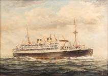 Henk van der Veer (1936-2016), scheepsportret van lijnschip de Johan van Oldebarnevelt van de Stoomvaart-Maatschappij Nederland, olieverf op doek, r.o. gesigneerd, 48 × 68 cm