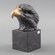 Bronzen beeld: adelaarskop, deels gepatineerd, op hardstenen basement, naar Archibald Thornburn, gietersmerk JB Deposee, Parijs, 20e eeuw, inclusief basement 22 × 17 × 10 cm