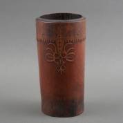 Bamboe pijlenkoker met gesneden decor, 20e eeuw, Borneo, Indonesië -vijf krimpscheuren-, 26 cm