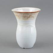 Crèmekleurig geglazuurde keramiek trompetvaas, ontwerp Jaan Mobach, uitvoering Kunstaardewerkfabriek Mobach, Utrecht, 26 cm