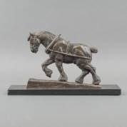Beeld: trekpaard, gepatineerd brons, op voet gesigneerd J. Gyselings, België, 20e eeuw, op natuurstenen basement, 22 × 37 × 10 cm