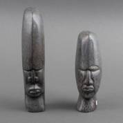Twee Afrikaans natuurstenen Shona beelden: twee bustes, grootste 27 cm