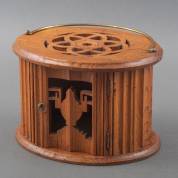 Iepen voetenstoof met gesneden decor: bovenzijde met Turkse knoop, het deurtje met bloemenvaas, Louis Seize, 19 × 27 × 18 cm