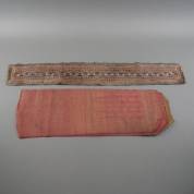 Kleine rode zijde kain limar schouderdoek met motieven van metaaldraad, Sumatra -enkele kleine haaltjes in stof, vlekjes-, 169 × 57 cm, daarbij: smalle zwarte geborduurde doek, Indonesië -licht verkleurd-,113 × 17 cm