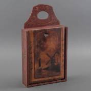 Hindelooper beschilderde houten schooltas met op het deksel decor van molen en zeilboot, 19e eeuw, 44 × 24 × 8 cm