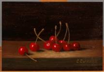 Hollandse School: stilleven met kersen op plint, olieverf op paneel, r.o. gesigneerd C. Cornelisz, 21e eeuw, 13 × 18 cm