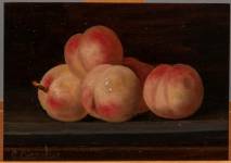Hollandse School: stilleven met perziken, olieverf op paneel, l.o. gesigneerd C. Cornelisz, 21e eeuw, 13 × 18 cm