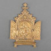 Messing triptiek in gotische stijl: Madonna met kind, West-Europa, 19e eeuw -sleets-, 17,5 × 9 cm