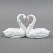 Porseleinen beeldje: zwanenkoppel, model 01006585, ontwerp José Puche, 1999, uitvoering Lladró, 13,5 × 26,5 × 7 cm