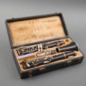 Gezwart houten klarinet in koffer, uitvoering Boosey & Hawkes, Londen, genummerd 39631, 20e eeuw