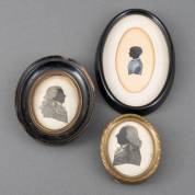 Drie silhouetportretjes: twee herenportretjes over een kopergravure, beide eind 18e eeuw, en kinderportret, verso geïdentificeerd als J.S.G. le Jolle, inkt gehoogd met gouache, 19e eeuw, laatstgenoemde 9 × 5 cm