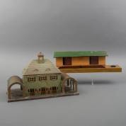 Metalen treinstation en goederenloods, uitvoering Karl Bub, Duitsland, jaren '30 -gebruikssporen en defecten-, treinstation 23 × 36 × 20 cm