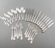 Verzilverd bestekgedeelte Wellner 90, Duitsland, bestaande uit: zes grote en zes kleine couverts, zes grote en zes kleine messen -enkele vlekjes en krasjes-