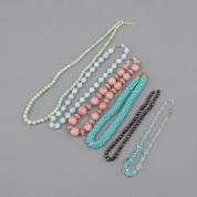 Diverse kralenkettingen, waaronder een collier met gefacetteerde granaten bolkralen en BWGG sluiting