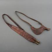 Twee lederen draaggordels met geïntegreerde kruit- en hagelzakken, 19e eeuw