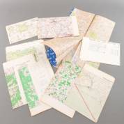 Elf 'oorlogskaarten' uitgegeven door de War Office en Kriegskarten-und Vermessungsamt, 1943-1945. In kleur. Verschillende formaten, gevouwen. Bremen-Hannover, Bad Kreuznach, Nürnberg, Central Europe Wissembourg, süd-ost Frankreich, Spanien Golf von Almeria, etc. De achterzijde van vijf kaarten zijn door een drukkerij in Nederland na de oorlog gebruikt als proefdrukken voor reclame