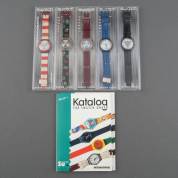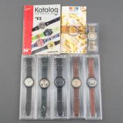 Vijf polshorloges, Swatch, waaronder: SCK103 Windmill en SCK102 Riding Star, alle in originele dozen, jaren '90
