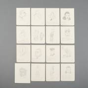 Dick Dreux (1913-1978), zestien schetsbladen, waarvan vijf aan weerszijden gebruikt, enkele voorzien van gedichten, potlood op papier, alle gemonogrammeerd, grootste 16,5 × 13 cm