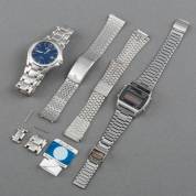 Twee stalen polshorloges, Seiko Quartz LC, referentienummer: A159-4019, aan stalen band met kliksluiting, Citizen Eco-Drive WR 100, aan originele band met vouwsluiting, daarbij: twee stalen bandjes en extra schakels -uurwerken staan stil-