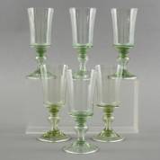 Zes lichtgroene wijnglazen met kabelrandje onderaan de kelk en baluster in de stam, naar antiek voorbeeld, 15,5 × Ø 7 cm