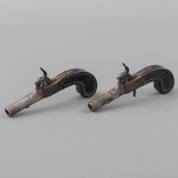 Koppel percussiepistooltjes met ebben handvatten, midden 19e eeuw -één handvat met defectje-, lengte 17,4 cm