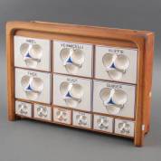 Houten keukenkruidenrek, de aardewerk bakjes met opschrift, jaren '30 -een bakje afwijkend in kleur-, 37 × 52 × 15 cm