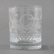 Gegraveerd whiskyglas met decor van vogels en verso een leeg medaillon, begin 19e eeuw, 9,5 × Ø 7,5 cm