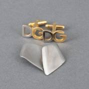 Wit- en geelgoud vergulde manchetknopen met het logo van Dolce & Gabbana, daarbij: paar tinnen oorclips, gesigneerd: Jorgen Jensen