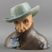 Keramiek beeld: polychroom beschilderde man met hoed -barst-, gesigneerd en gedateerd Lida Baas 1996, 38 × 37 × 35 cm