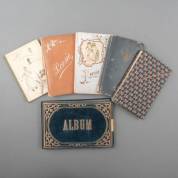 Poesiealbum. Oblong 8vo. Fluwelen band. Met 40 bijdragen uit de jaren 1880-1885. Daarbij vier poesiealbums met bijdragen uit de jaren 1893-1926. 8vo. Oorspr. bandjes. (Uit de Van Eck familie?). En 1 ander album