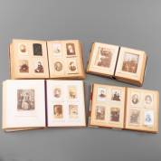 Vier fotoalbums met samen circa 250 portretfoto's (carte-de-visite en kabinetfoto's), eind 19de eeuw. 4to. Lederen banden (3) en velourband -beschadigingen-