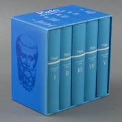 Vijf boeken: Plato. Verzameld werk. Nieuwe, geheel herziene uitgave van de vertaling van X. de Win. Bewerkt door J. Ector e.a. Kapellen, Pelckmans, 1999. 5 delen. Oorspr. kartonnage, foedraal