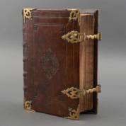 Biblia, dat is de gantsche H.Schrifture (Staten Generael vertaling) en de Apocryphe boecken. Dordrecht, P. Keur, Amsteldam, P. Rotterdam, 1719 (-1720). Groot folio. Blindgestempeld juchtleer over houten platten, bewerkte messing hoeken en twee klampsluitingen. Met gegraveerde titel -voorste schutbladen ontbreken; watervlekken-