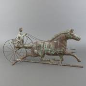 Koperen 'sulky jockey' windvaan, Verenigde Staten, 20e eeuw -oxidatie- 37 × 80 × 29 cm