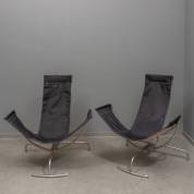 Paar fauteuils met kunststof zitting en aluminium onderstel, ontwerp Achille Castiglioni en Ferruccio Laviani, model 40/80, 1999 -gebruikssporen, één dopje ontbreekt-