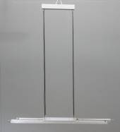 RVS hanglamp met twee uitschuifbare balken, model Tieso Tender, ontwerp Rolf Heide, uitvoering Ante, in langste stand 145 × 206 × 13 cm