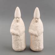 Marie Louise Kommers (1950), twee witte aardewerk kardinaaltjes, gemaakt voor de tentoonstelling 'Mx 3' in De Vleeshal in Middelburg in 2002, 35 cm hoog, daarbij: document en kopie krantenartikel over de kunstenaar en betreffende tentoonstelling