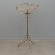 Goudkleurige stalen boekenstandaard met twee kaarsenhouders, midden 20e eeuw, 130,5 × 69,5 × 49 cm