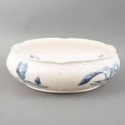 Grote aardewerk waskom met blauw-wit floraal decor Lotus 3, uitvoering Franz Anton Mehlem, Bonn, begin 20e eeuw, 14 × 42 cm