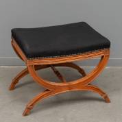 Notenhouten taboeret met zwarte bekleding, midden 20e eeuw, 46 × 55 × 42 cm
