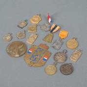 Diverse medailles en penningen, waaronder: Oranjecomité Amsterdam 1956 en 1957, trouwe dienst bij de Koninklijke Marine, penning ter ere van het 30-jarig bestaan van Fokker, en diverse fietsmedailles