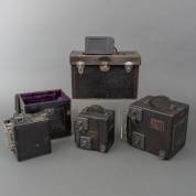Drie plaatcamera's, modellen: Speed Graphic, Series B Curtain Aperture, en Series D Curtain Aperture, alle uitvoering Graflex -werking niet getest-